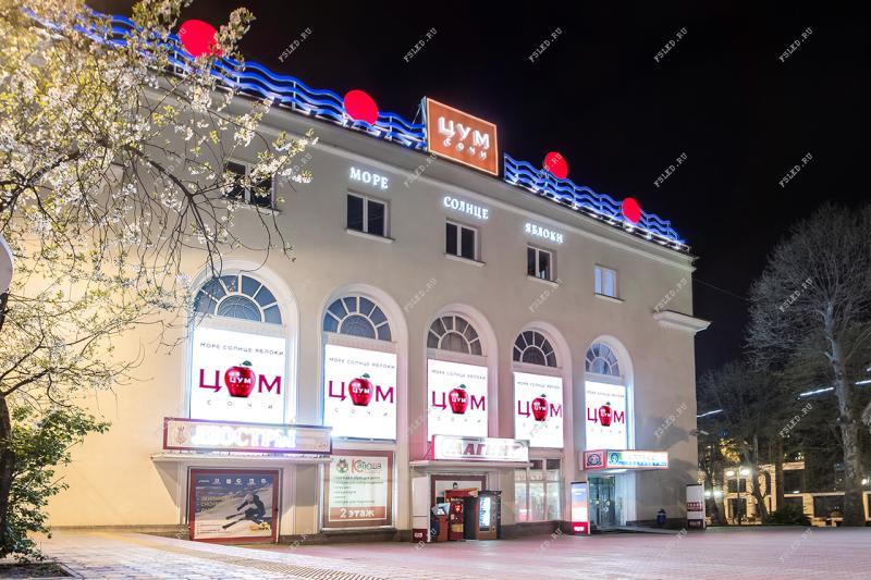 Олимпийский городок Сочи с каждым годом все больше принимает новых туристов из разных Стран и Республик. И конечно любой отдыхающий города обязательно посетит ЦУМ, на входе которого увидит 5 светодиодных экранов. Главное преимущество этих экранов – это возможность воспроизведения частей одного видео на разных экранах. Теперь данные экраны состоят в нашей сети светодиодных экранов, и рекламное агентство «Первое Уличное Телевидение», с которым мы уже давно сотрудничаем, предоставляет пакет полезного информационного контента для экранов, а также занимается их раскруткой.