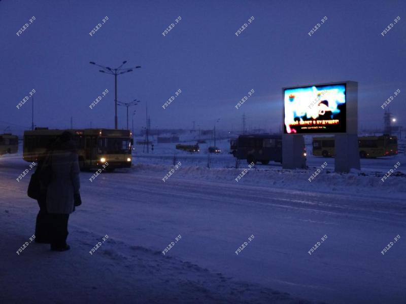 В городе Норильске, установлен светодиодный экран на автостанции, и это правильно сделано!
