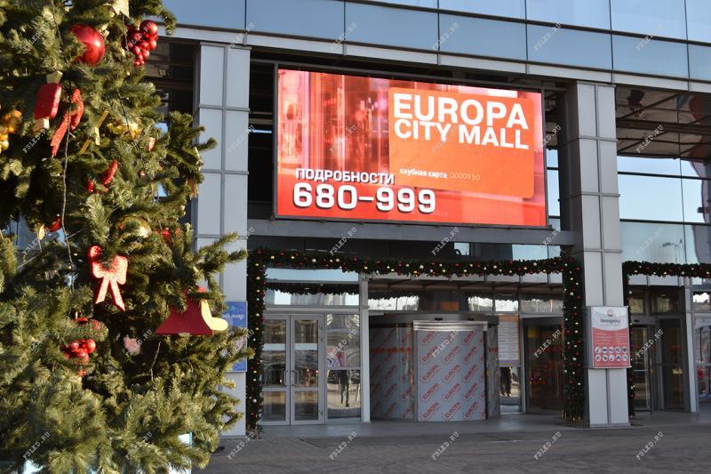 Взгляд посетителей ТЦ «Европа Сити Молл», изначально падает на светодиодный экран, установленный над входом в торговый центр. Экран без спора хорош! Высокая яркость, Четкая картинка и большое разрешение позволяют увидеть рекламу на светодиодном экране с 200 метров, а в темное время суток намного дальше. Рекламное агентство, с которым уже давно сотрудничает наша компания, обеспечивает экрану постоянных рекламодателей и полезный контент, благодаря которому на экран действительно интересно смотреть. Отдел по присоединению светодиодных экранов выражает благодарность за плотное сотрудничество рекламодателей данного светодиодного экрана с нашей компанией.