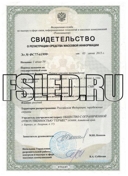 Официальные подтверждающие документы о переходе Первого Уличного Телевидения в ряды Средств Массовой Информации