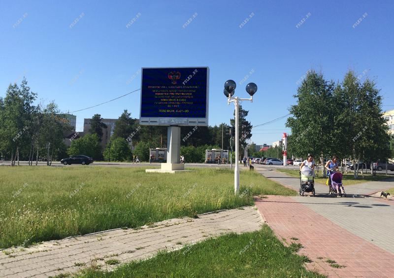 Led экран в городе Когалым имеет удивительно удачное расположение. Он направлен на очень оживленный перекресток Мира и Молодежной, который находится в центре города. Рядом расположено множество магазинов и организаций, которые обеспечивают постоянный приток потенциальных клиентов также и для компаний, размещающих рекламу на светодиодном экране.