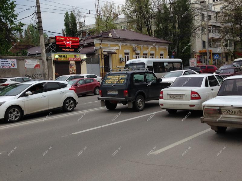 Светодиодный экран сети FSLed в Ростове-на-Дону установлен на здании ломбарда на улице Красноармейской. Она находится практически в самом центре, что позволяет жителям города вдеть все, что происходит на экране, ежедневно проходя и проезжая мимо. Стоит отметить, что улица Красноармейская имеет в общей сложности шесть полос движения, а также на ней останавливается десять видов маршрутного транспорта. Таким образом, налицо преимущество размещения рекламы в городе Ростов-на-Дону именно на этом led экране!