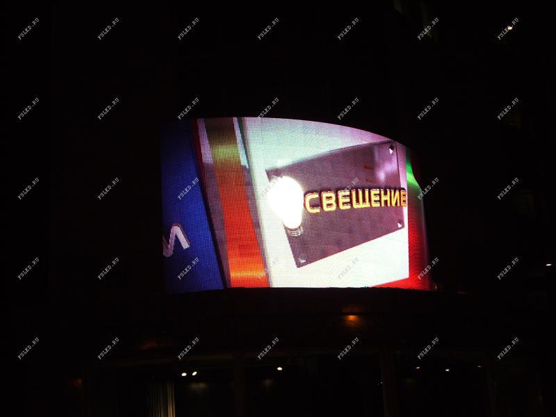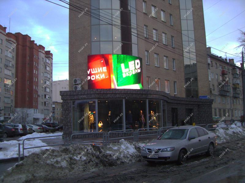 В городе Челябинске установлен новый светодиодный экран площадью 19,52 кв.м, радиальной плоскости относительно вертикальной оси (радиус = 5256 мм, расстояние м/у краями экрана = 5585 мм). Такие экраны очень редкие, и не в каждом городе есть такой экран!