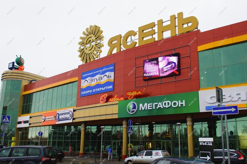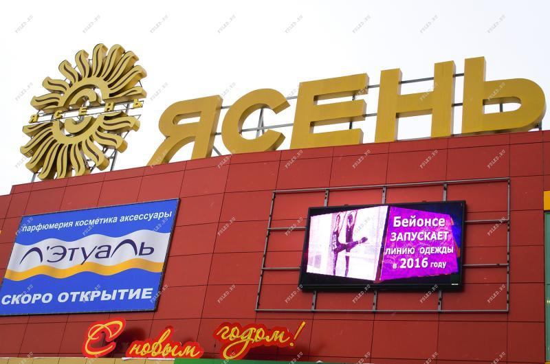 В городе Иваново, на фасаде торгового центра "Ясень", был установлен новый led экран, с шагом Р13, размером 2,5Х5 метров. Большой пешеходный трафик и огромная парковка перед ТЦ, говорит о его удачном расположении!